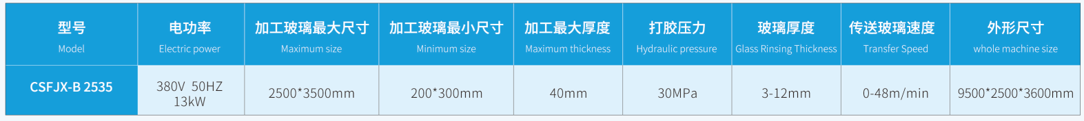 可实现各种尺寸矩形中空玻璃打胶的连续性,打胶效率高,质量稳定;两套完全独立的供胶系统.两种密封胶可任意切换;经济适用,适合玻璃深加工企业;